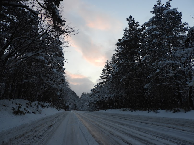 にぎやかな道の駅を出ると、すぐまた静寂の雪景色。